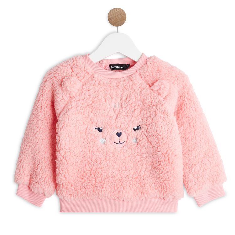 En savoir +Qu'il est mignon cet petit sweat tout doux en sherpa hyper confortable et chaud ! Il affiche un tendre motif animal brodé devant avec des oreilles en relief. Le sweat possède des manches raglan et des finitions bord-côtes. Le col est pressionné au dos pour faciliter l'habillage.