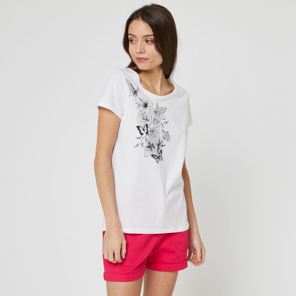 En savoir +Une valeur sûre du dressing féminin, ce t-shirt à manches est doux et confortable. Son petit plus : un imprimé fantaisie qui lui donne du peps !