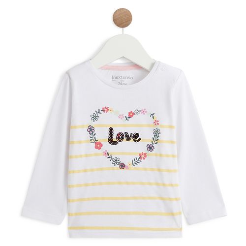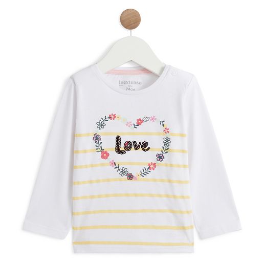 En savoir +Votre petite princesse sera à croquer dans ce t-shirt à manches longues avec son joli imprimé cœur fleuri devant rehaussé de sequins ! Avec son col rond sans étiquette dans le cou, il est agréable à porter avec sa matière toute douce 100% coton. Ce t-shirt à manches longues possède une ouverture boutonnée à l'épaule pour un enfilage facile.