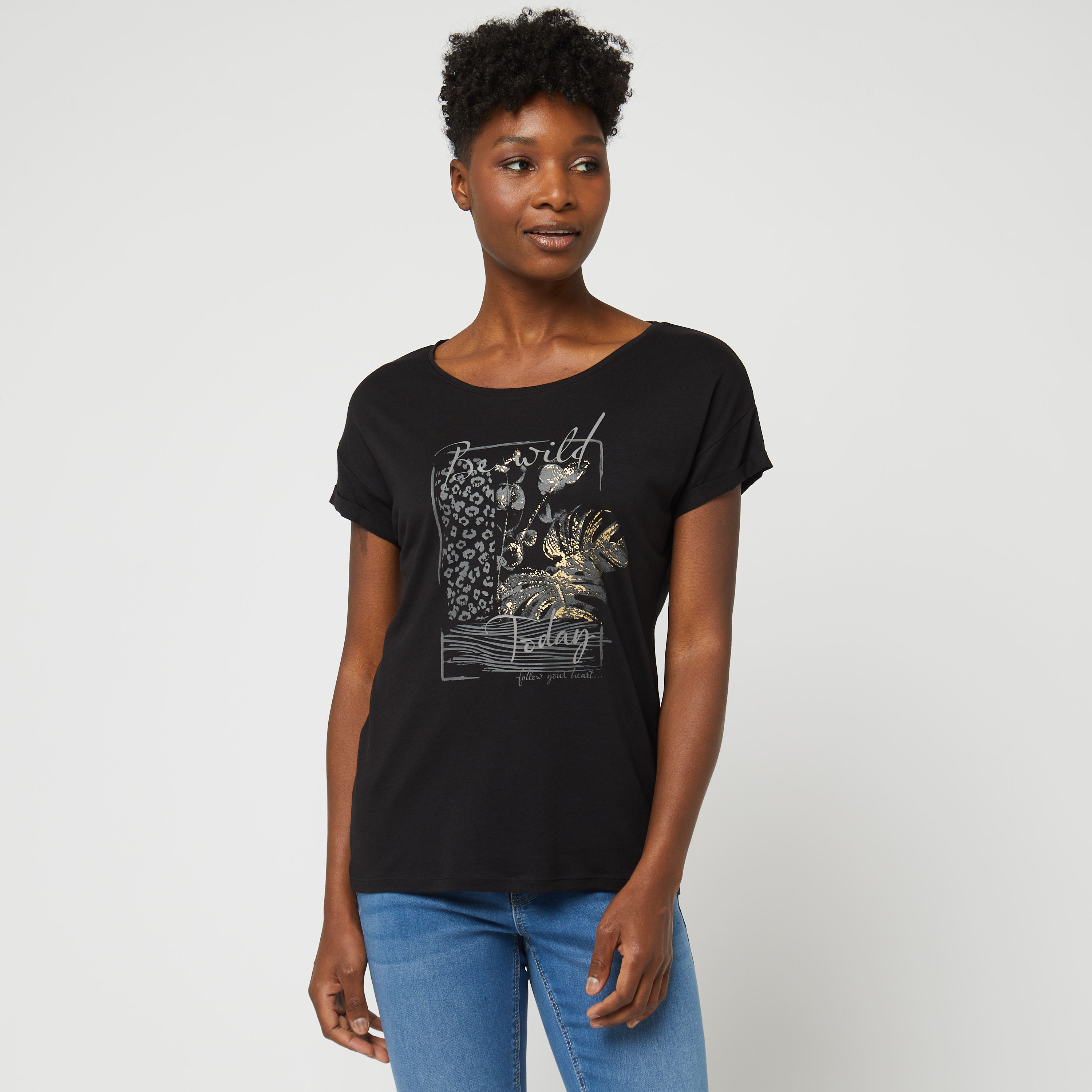 En savoir +Envie d'une tenue qui se démarque ? Ce t-shirt manches courtes imprimé fantaisie est le choix parfait pour ajouter une touche originale à votre look quotidien. Son design unique et audacieux vous permettra de vous exprimer avec style et créativité. Une caractéristique spéciale de ce t-shirt est les revers bas de manches. Cette touche raffinée et moderne donne une allure décontractée tout en apportant une touche d'élégance supplémentaire.