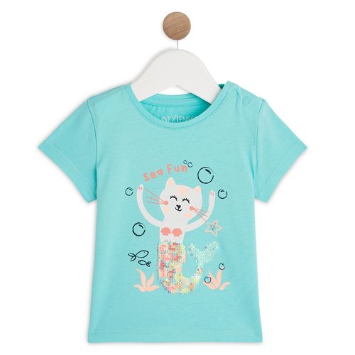 Cet adorable t-shirt est fait pour habiller nos petites princesses avec sa conception en jersey de coton issu de l’agriculture biologique. On adore le motif chat-sirène trop mignon imprimé devant avec des détails en sequins. L'encolure est ronde et bien extensible et possède une ouverture pres
