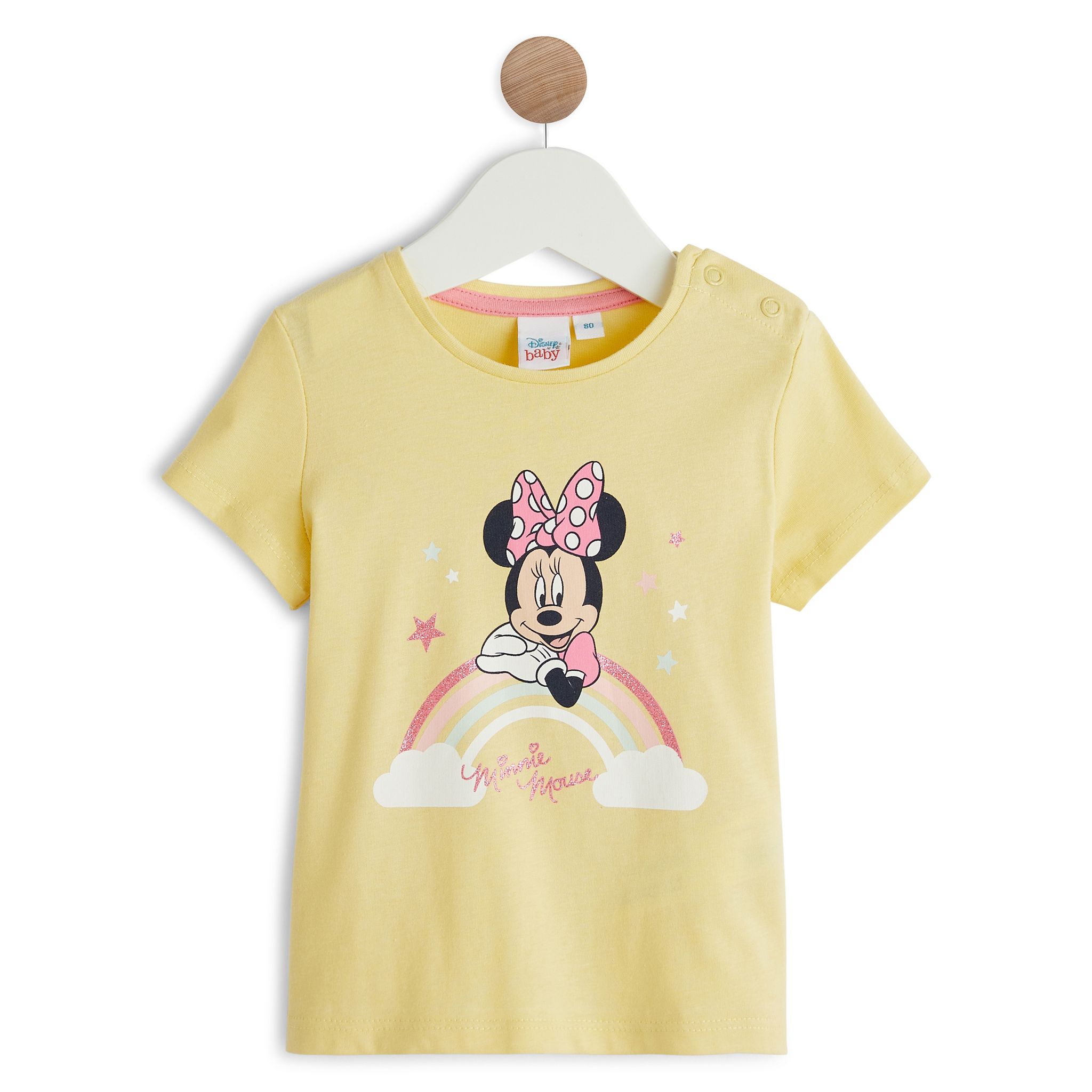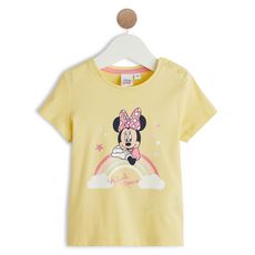 En savoir +On craque pour ce t-shirt à manches courtes jaune, et son grand motif Minnie avec un arc-en-ciel sur le devant ! Parfait pour l'été, ce t-shirt léger possède des manches courtes et une encolure ronde boutonnée et bien extensible pour faciliter l'enfilage.