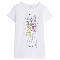 Le t-shirt fille à manches courtes imprimé de deux filles, amies, est un vêtement ludique et affirmant l'identité féminine pour votre enfant. Ce t-shirt est confectionné dans un tissu léger et respirant, idéal pour les journées chaudes. Avec ses manches courtes, le t-shirt offre une liberté de mouve