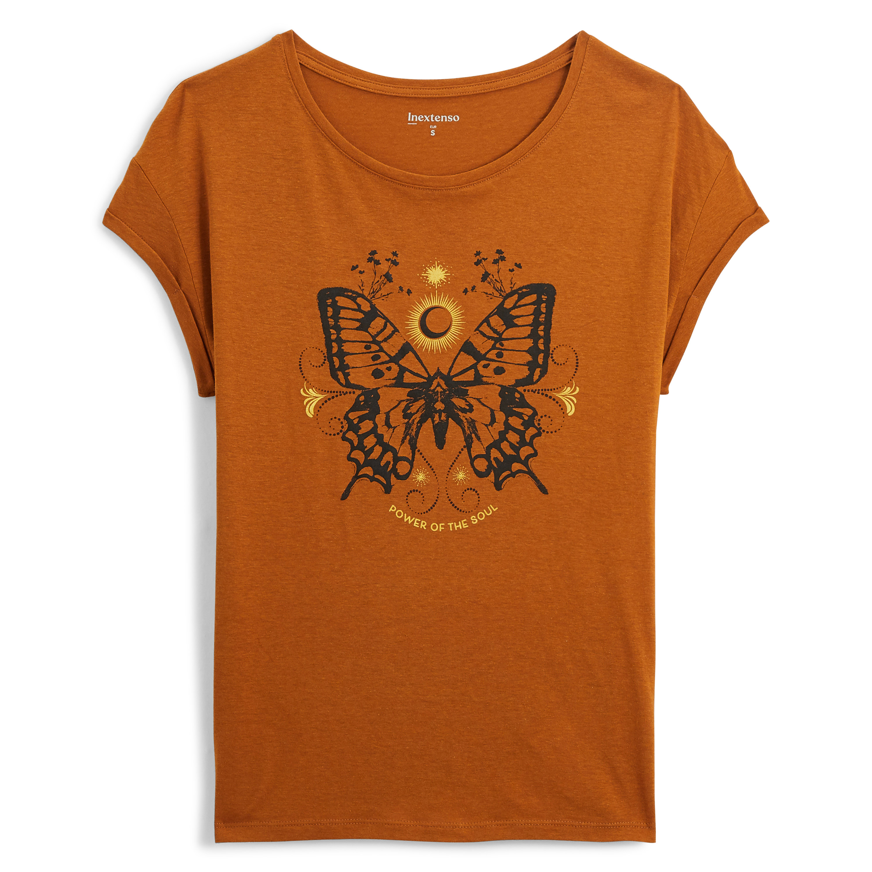 En savoir +Léger et doux, ce t-shirt à manches courtes est parfaitement adapté pour cet été ! Avec son imprimé papillon sur le devant, il apporte une jolie touche fantaisie à votre tenue.