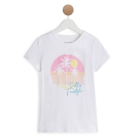 En savoir +Ultra cool et stylé, les filles vont adorer porter ce t-shirt conçu en jersey 100% coton avec son imprimé girly sur le thème de Los Angeles ! Confortable et facile d'entretien, il est parfait au quotidien et s’associe facilement. Le t-shirt possède un col rond et n’a pas d’étiquette qui gratte le cou.