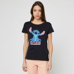 T-shirt manches courtes gris anthracite femme Lilo et Stitch