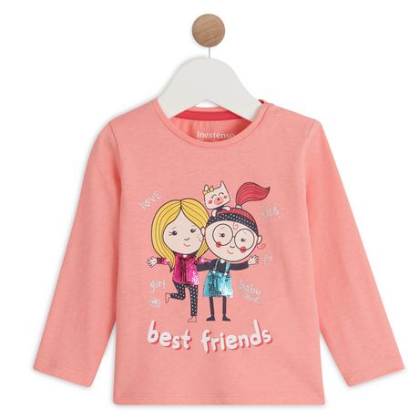 Bébé va adorer porter ce t-shirt à manches longues, avec son motif " meilleures amies " ultra mignon floqué sur le devant, et rehaussé de sequins ! Ce t-shirt possède une encolure arrondie finition bords-côtes, et une ouverture pressionnée sur l'épaule pour un enfilage facile. Sa matière en jersey 1
