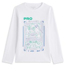 En savoir +Pièce maîtresse du vestiaire de nos petits trésors, ce t-shirt en pur coton est agréable à porter. Avec son col rond et ses manches longues, il se matche facilement avec un jean ou un chino, seul ou en duo sous une chemise pour un style décontracté. Original, il se remarque par des motifs manettes de jeu sur le devant pour dynamiser les tenues !