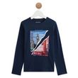En savoir +Pièce maitresse du vestiaire urbain des garçons, ce pull à manches longues nous fait voyager avec un grand motif placé sur le devant reprenant une image du pont et des gratte-ciels de San Francisco en photo-impression.