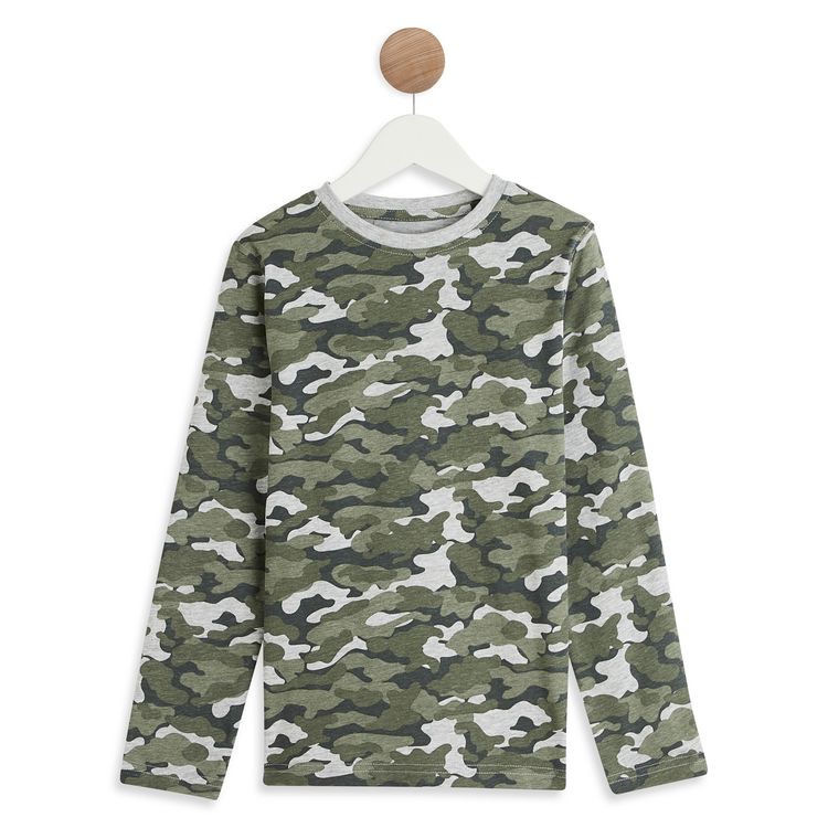 Nos jeunes aventuriers vont adorer porter ce t-shirt à manches longues imprimé camouflage ! Confortable et facile d'entretien, il est parfait au quotidien et s’associe facilement.