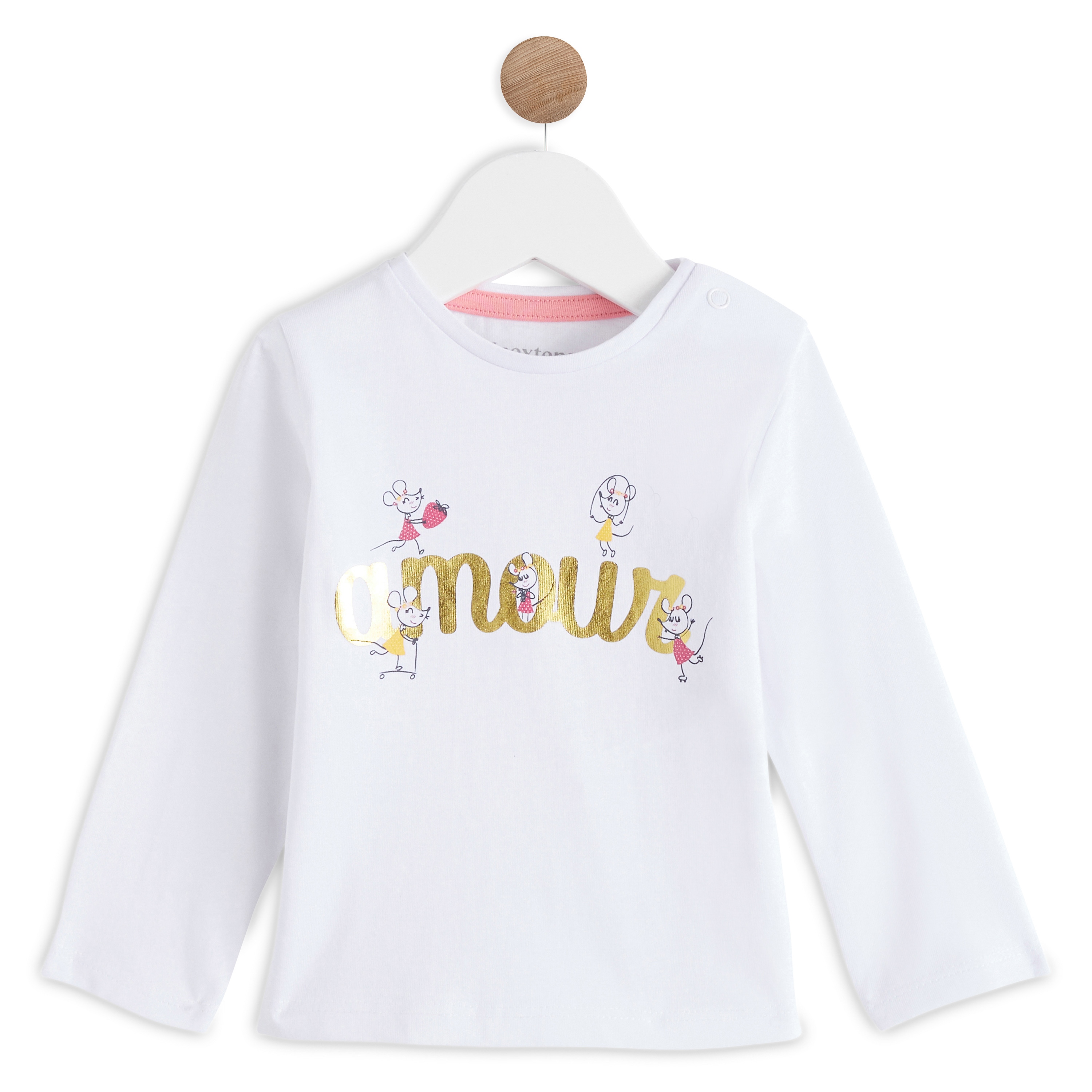 En savoir +Bébé va adorer porter ce t-shirt à manches longues, avec son message fantaisie doré floqué sur le devant, et rehaussé de détails dorés et argentés ! Ce t-shirt possède une encolure arrondie finition bords-côtes, et une ouverture pressionnée sur l'épaule pour un enfilage facile. Sa matière en jersey 100% coton est douce et agréable à porter.