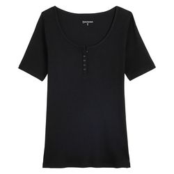 Le t-shirt col tunisien est un bon basique du dressing féminin ! Avec sa fermeture boutonnée, il apporte une touche d'élégance qu'on apprécie.