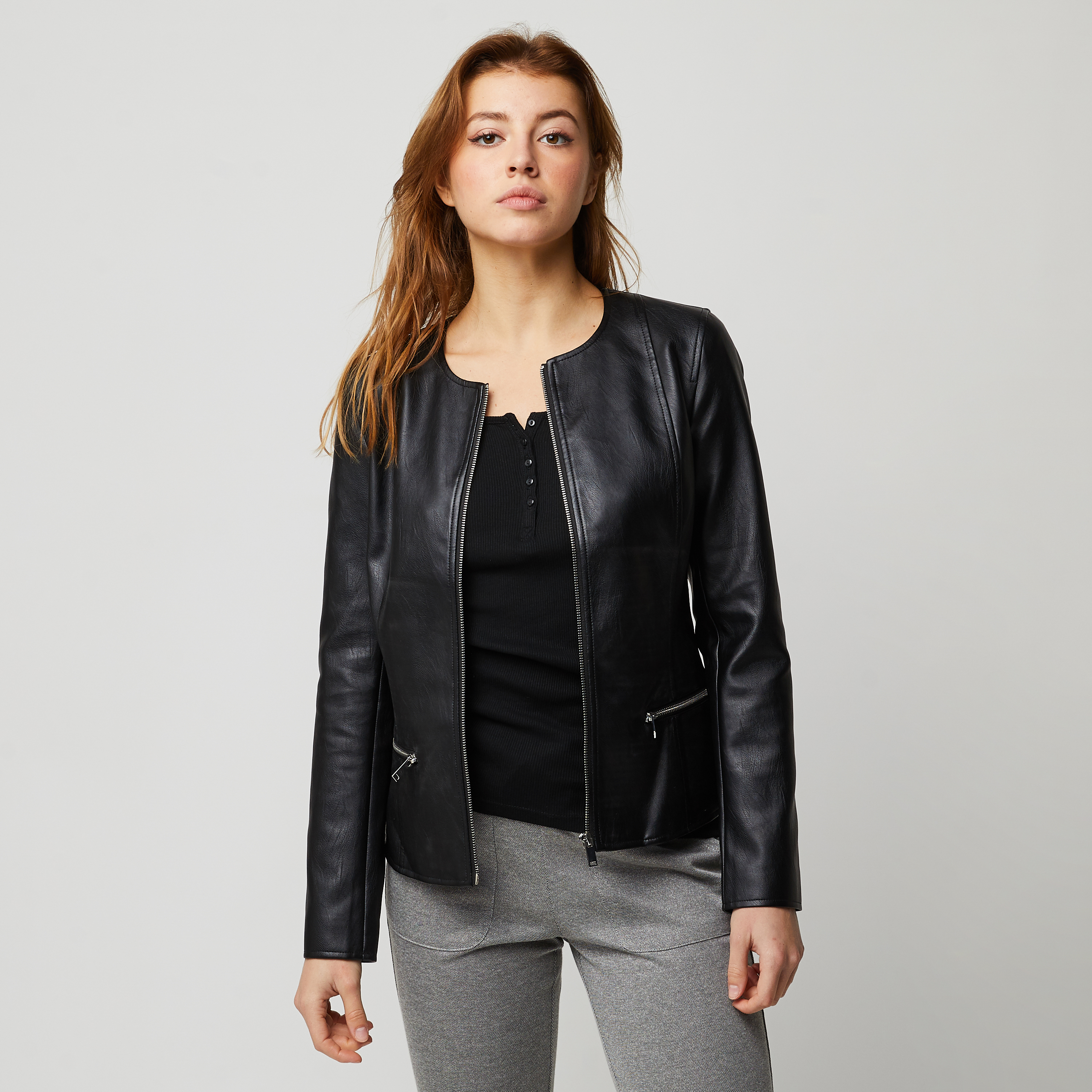 En savoir +Ajoutez une touche vintage et originale à votre tenue avec cette belle veste en simili cuir. Pratique, elle possède 2 poches zippées devant et un col rond.