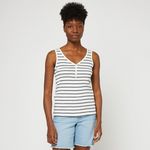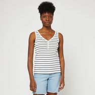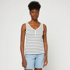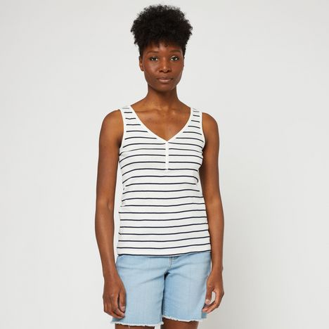 En savoir +Indispensable pour compléter vos looks d’été, ce débardeur sans manches est le complice de vos tenues. Facile à mixer, il mise sur une encolure V avec boutons fantaisie et un jeu de rayures tendance. On aime son allure décontractée et sa matière toute douce agréable à porter.