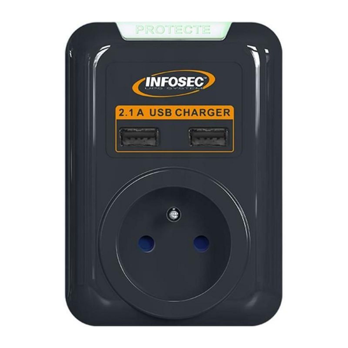 INFOSEC - S1 USB NEO - Parasurtenseur 1 Prise FR + 2 ports USB - Garantie 2 ans