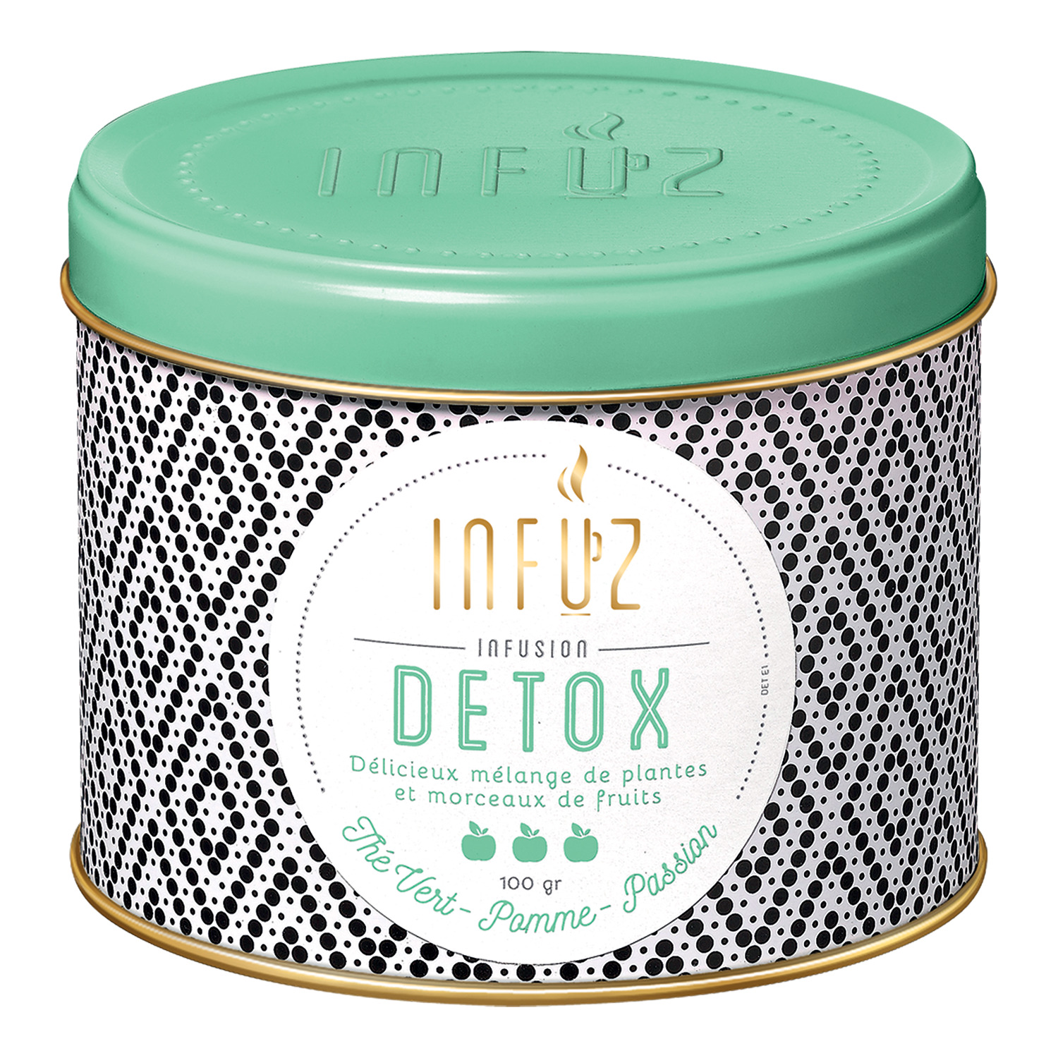 Délicieux mélange de thé vert, de morceaux de pomme et de passion pour une pause détox en éliminant eau et toxines Infuz - Infusions Détox - Thé Vert Pomme Passion - 100g