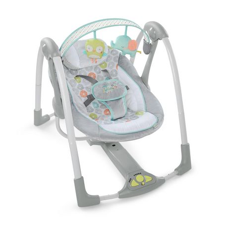 La Balancelle Compacte Hugs & Hoots d'Ingenuity offre des tissus moelleux et un siège profond ultra-confortable. Cinq vitesses de balancement avec minuterie à 3 temps permettent aux parents de définir le compromis balancement-durée correspondant à la zone de confort optimale pour leur tout-petit. Les nouveau-nés peuvent se relaxer en écoutant une sélection de huit mélodies et de trois sons agréables de la nature. La technologie innovante Hybridrive™ permet d’économiser les piles. Cette balancelle s'aplatit complètement pour faciliter le transport et le rangement. Le harnais à 5 points, la structure robuste, l’appui-tête rembourré et les pieds antidérapants répondent parfaitement aux exigences de sécurité des parents !
