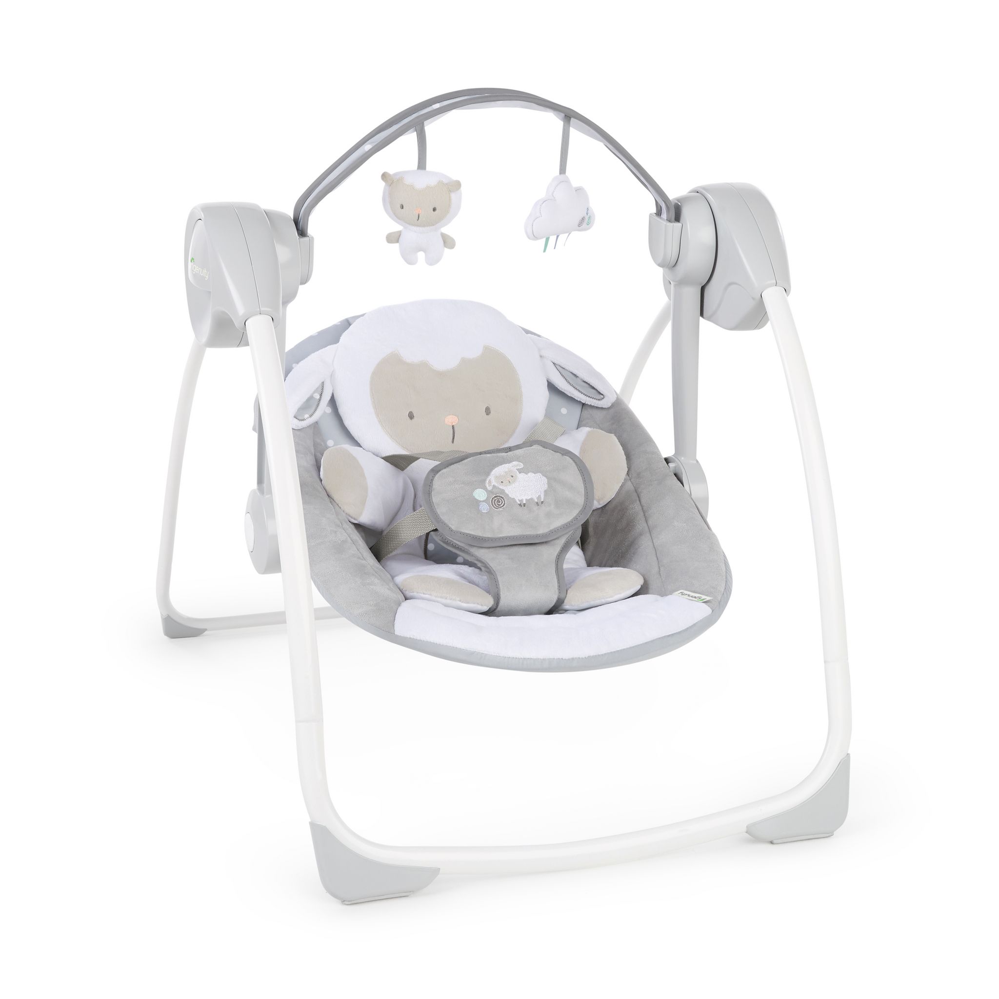 Emmenez le confort sur la route avec la balancelle portable Agneau câlin d’Ingenuity. Cette mini balancelle est petite mais pleine de fonctionnalités. Apaisez votre nouveau-né avec des réglages automatiques, 12 mélodies apaisantes, 2 positions allongées et 3 réglages de minuterie : 30, 45 et 60 minutes. La conception compacte et pliable de cette petite balancelle pour bébé la rend idéale pour voyager ou simplement se déplacer dans la maison. Des repose-pieds et supports latéraux rembourrés offrent un soutien optimal à votre enfant. Vous pouvez vous rassurer en le sachant en sécurité grâce à un harnais 5 points réglable. Quand bébé est à ce point détendu, vous pouvez souffler vous aussi.