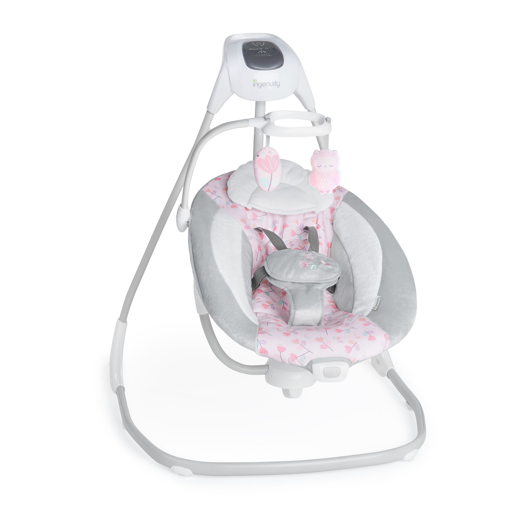 Quand ça va trop vite, vous auriez bien besoin d'un petit peu d'aide. Vous pouvez vous en sortir grâce à la balancelle tout confort Cassidy d'Ingenuity car bébé est confortablement installé et vous pouvez le surveiller d'un œil. Cette balancelle a été conçue pour bercer doucement les tous petits. Ajustez l'inclinaison du siège, choisissez l'une des trois directions de balancement ou alternez les 6 vitesses. Confort assuré grâce à des vibrations et balancements tous doux. Bébé adore voir ses jouets suspendus au-dessus de sa tête et s'amuse en toute tranquillité. Le siège pivote sur 180º et maman est rassurée car elle ne perd pas de vue son bout de chou. Structure super légère sur roues pour des déplacements faciles d'un espace à un autre. Livrée avec un adaptateur de courant. Chaque élément de la balancelle a été conçu pour un usage parents-bébé optimal. Pendant que bébé se balance gentiment, profitez-en pour mettre une lessive en marche ou avancer dans votre liste de tâches ménagères.