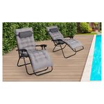 Ce lot de 2 fauteuils destiné à la relaxation, vous offre un excellent confort, doté d'un réglage 3 positions, sa fonction allongée « zéro gravité » (jambes positionnées légèrement au-dessus du niveau du coeur permet une détente assurée. Il est équipé de sécurité pour le maintien en toute sécurité