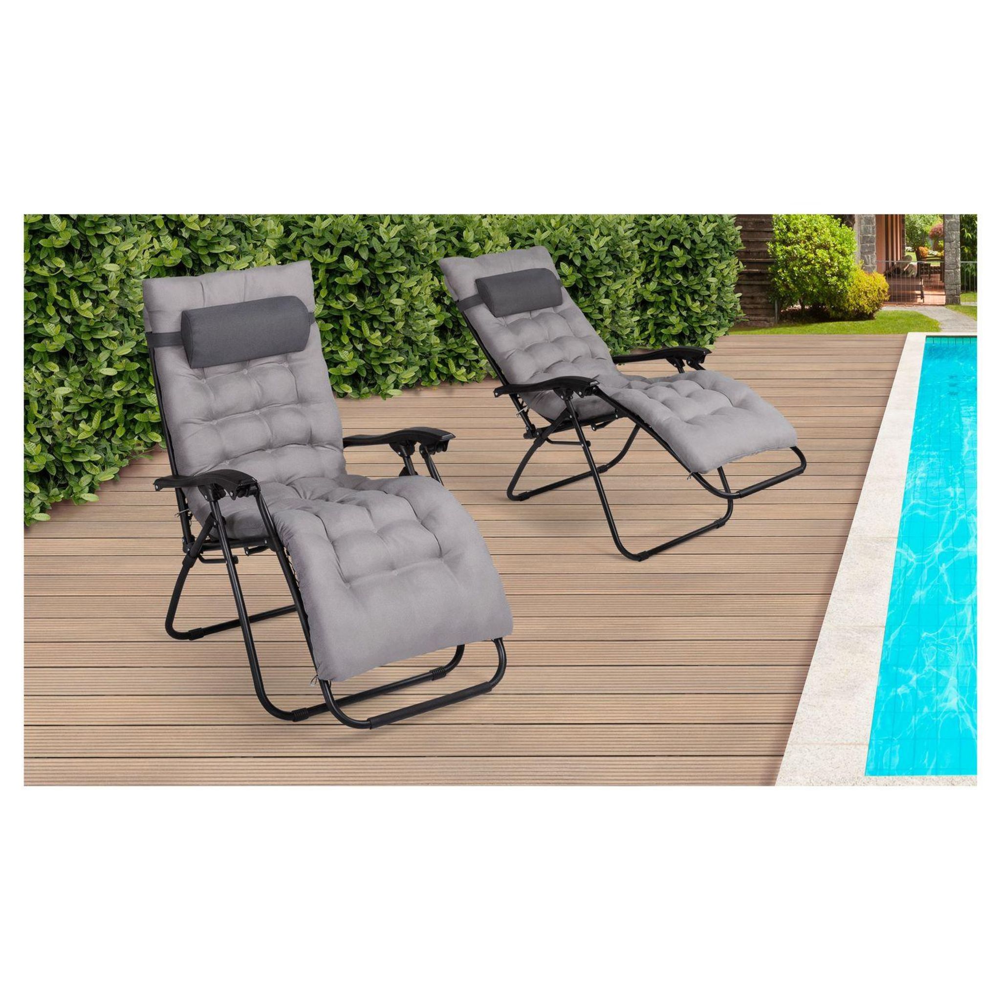 Fauteuils de jardin Relax avec coussin gris anthracite - Lot de 2