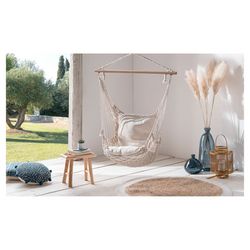 Hamac de jardin suspendu en macrame avec coussin beige