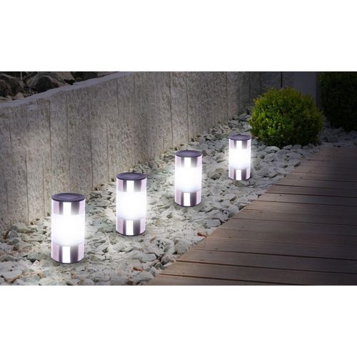 Lot de 4 bornes solaire à planter ou à poser Gris - INOXIA