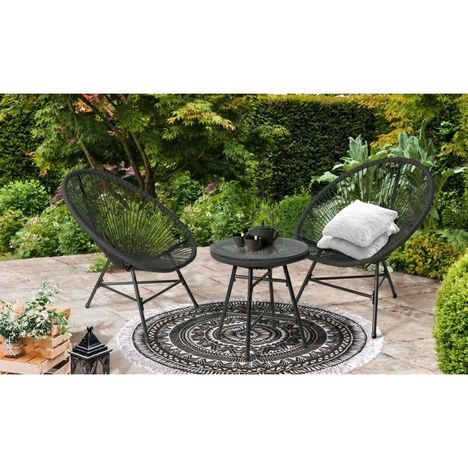 _Cet ensemble de jardin IBIZA se compose de deux fauteuils dit "œufs" et d'une table basse, disponible en 3 coloris, il viendra égayer votre extérieur ou votre intérieur. _Il est idéal pour profiter de votre terrasse, de se pauser pour le café ou encore pour lire un livre bien installé dans ses fauteuils extrêments confortables. Résistant au soleil et aux intempéries, l'ensemble de jardin IBIZA est fait pour vous ! _Un produit Inkazen®