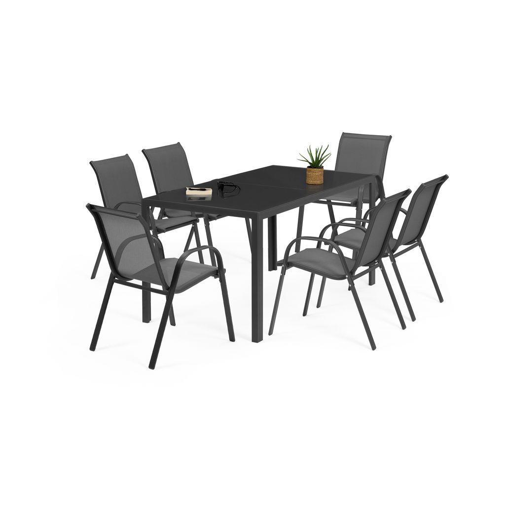Salon de jardin - 6 places - Acier - Gris