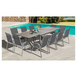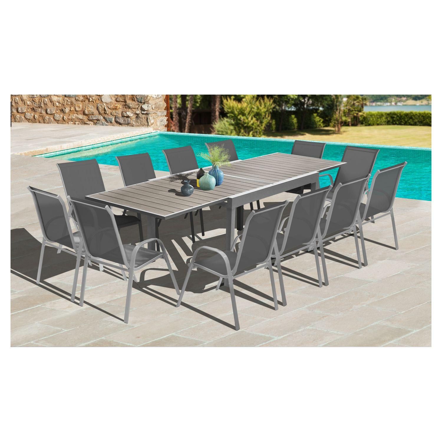 Table de jardin extensible - 12 places - Aluminium/Verre trempé - Gris