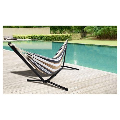 pour vos moments de détente dans votre jardin." "Toile hamac : (L) 200 x (l) 150 cm