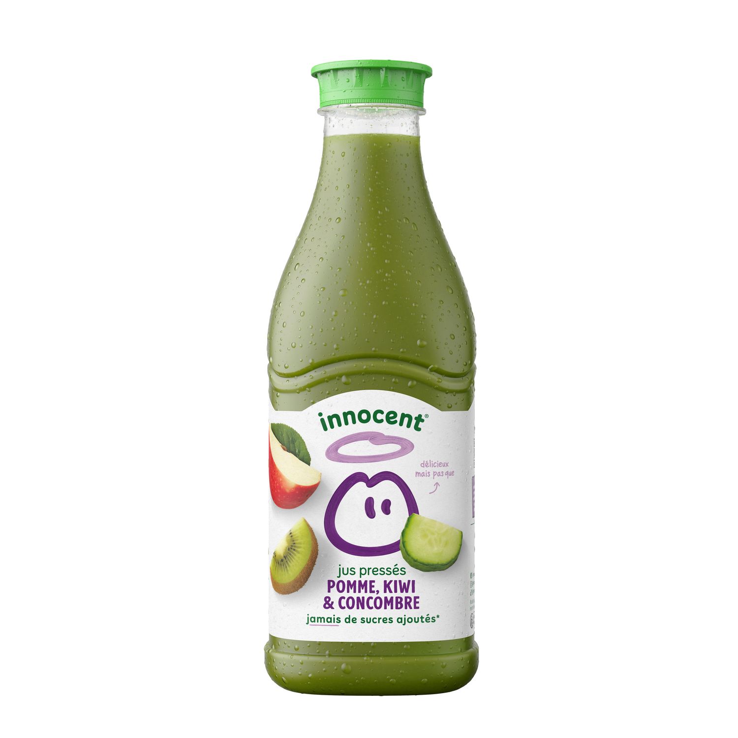 Pour ce jus, nos experts se sont focalisés sur des ingrédients croquants, juteux et rafraîchissants. Ce jus innocent concombre kiwi, c'est tout simplement un jus vert. Il est vert, il est bon, il est vert-ment bon. Et vu que vous lisez ceci, on pense que vous aussi vous voulez lui donner le feu vert. Heureux de nous mettre tous d'accord.