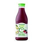 Ingrédients : 5 pommes pressées (65%), 26 raisins rouges pressés (15%), 16 framboises écrasées (5%), 1/3 poire écrasée (5%), 1/4 grenade pressée (4,8%), 15 1/2 cassis écrasés (1,7%), 3 1/2 mûres écrasées (1,7%), un filet de citron, un doigt de betterave pressée, un zeste de vitamine C.