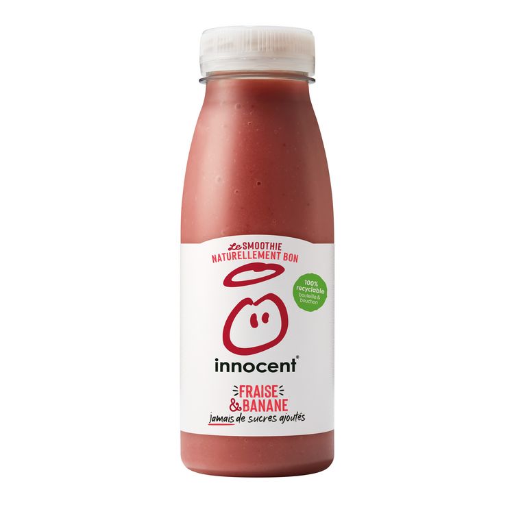 La banane et la fraise sont aux smoothies ce qu’Averell et Joe Dalton sont à la BD. Ensemble, elles forment un couple à la fois tendre et explosif. Ben oui, la grande banane n’est pas très vive, un peu pataude et ne se tient pas droite. A force, cela irrite la fraise qui est fonceuse et très intelligente. Mais pas du tout patiente. Et qui finit souvent par se fâcher tout rouge. Chez innocent, on avait un peu peur la première fois qu'on les a mixées ensemble. Donc on a ajouté de la pomme et du raisin pour être sûrs que tout se passe bien. Et on a obtenu un délicieux smoothie vitaminé fraise banane pomme. Ouf. La pause goûter est sauvée.