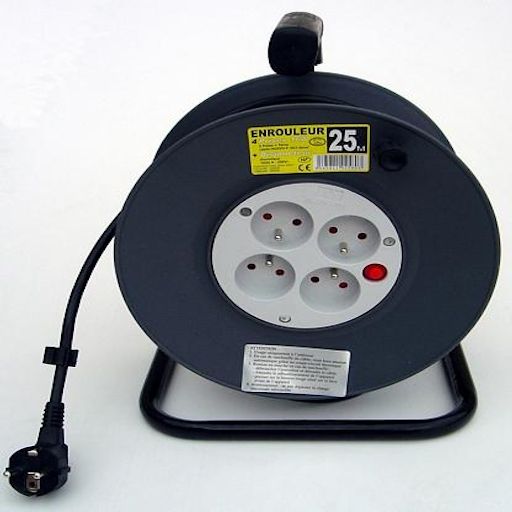 Inotech 192 580 - Câble : HO5VV-FSection : 3G 1,5mm²Longueur : 25m4 prises 16A + coupe circuit thermiquePuissance Max. Déroulé : 3200 W sous 230VPied en acier vinylique (anti oxydation)Poignée Ergonomique