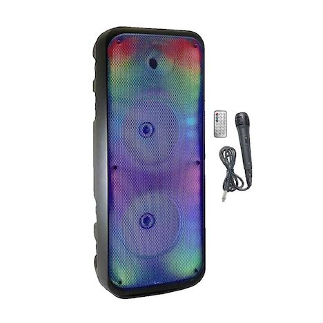 Découvrez l'enceinte karaoké lumineuse inovalley KA25-FIRE, conçue pour des soirées inoubliables. Dotée de la technologie Bluetooth V5.0, cette enceinte portable offre une connexion sans fil rapide et stable avec vos appareils. Sa puissance impressionnante de 850 W délivre un son de haute qualité avec une excellente clarté. Le design noir élégant est agrémenté d'un éclairage festif pour créer l'ambiance parfaite. L'enceinte mesure 64 cm de hauteur et pèse seulement 4,14 kg, ce qui facilite son transport. Elle est équipée de multiples options de connectivité, y compris USB et AUX, et est fournie avec une télécommande et un microphone pour des performances instantanées. Parfaite pour le karaoké, elle combine puissance, mobilité et design pour une expérience audio exceptionnelle.