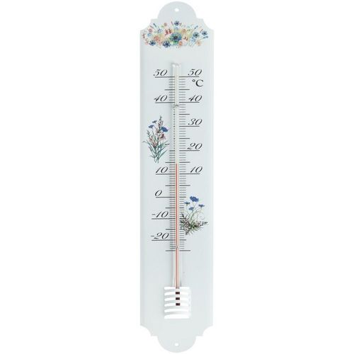 Décor fleurRéférence commerciale: 4353Horloge: NonCouleur: Métal décorHygromètre: NonPluviométrie: NonType de pose: A fixerAffichage de la température extérieure: NonEcran rétroéclairé: NonMatière principale: AcierType de produit: Intérieur ou extérieurType de thermomètre: TraditionnelVitesse et dir