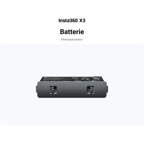 La durée de garantie est de 2 ans. Caractéristiques générales Type Batterie Appareil compatible Caméra sport Marque compatible Insta360 Modèle(s) compatible(s) One X3 Coloris Noir Contenu du carton Livré avec : Batterie, Cette batterie est livrée avec son boîtier doté d'u