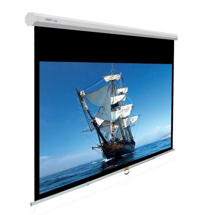 Instaal INSMAN170B L'écran de projection Instaal INSMAN170B offre le meilleur rapport qualité/prix pour un écran manuel : toile traitée pour une image parfaite, bords noirs, extra-drop pour un meilleur contraste, dos occultant pour le placer devant une fenêtre. Le système de fixation rapide et sûr permet un montage au mur et au plafond. Parfaitement adaptée aux projecteurs à matrice (LCD, DLP).