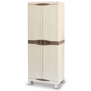 Découvrez l'armoire haute en polypropylène INTEC beige et taupe, idéale pour le rangement intérieur et extérieur. Verrouillable et résistante aux intempéries, elle est équipée de 4 étagères supportant jusqu'à 25 kg chacune. Dimensions : 700 x 470 x 1840 mm.