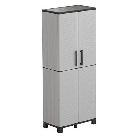 Optimisez votre espace de rangement avec cette armoire haute en polypropylène recyclable. Equipée de charnières en acier, de tablettes réglables et de pieds, elle est parfaite pour organiser divers espaces. Dimensions : 680 x 370 x 1690 mm.