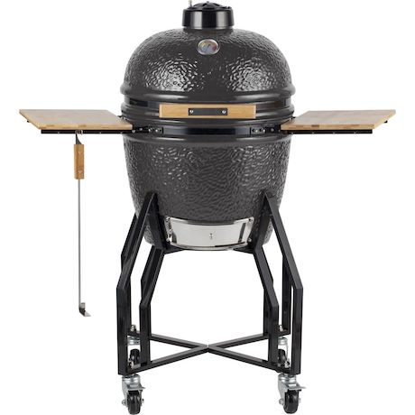 Le chariot en acier peint équipé de quatre roulettes pivotantes (dont deux avec freins) rend son positionnement sur votre terrasse simple et sécurisé. Ce n'est pas qu'un barbecue : c'est un four céramique multifonction capable de griller, braiser, fumer, rôtir et cuire des pizzas tout ce que les passionnés de cuisine d'extérieur recherchent.