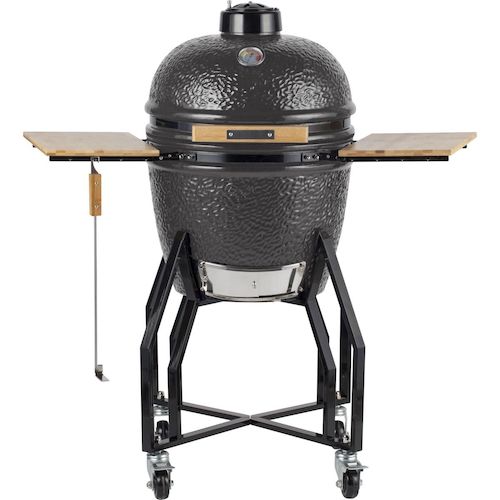- Accessoires inclus : 2 grilles forme demi-lune, élévateur de grille, 2 déflecteurs en céramique, panier à charbon, tisonnier, Thermomètre intégré