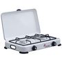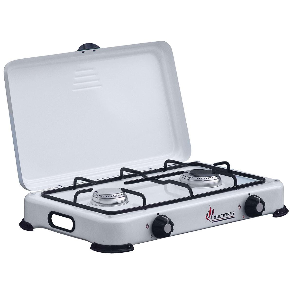 Plaque de cuisson gaz portable 2 feux 3200W Réchaud à gaz butane ou propane Blanc laqué Couvercle