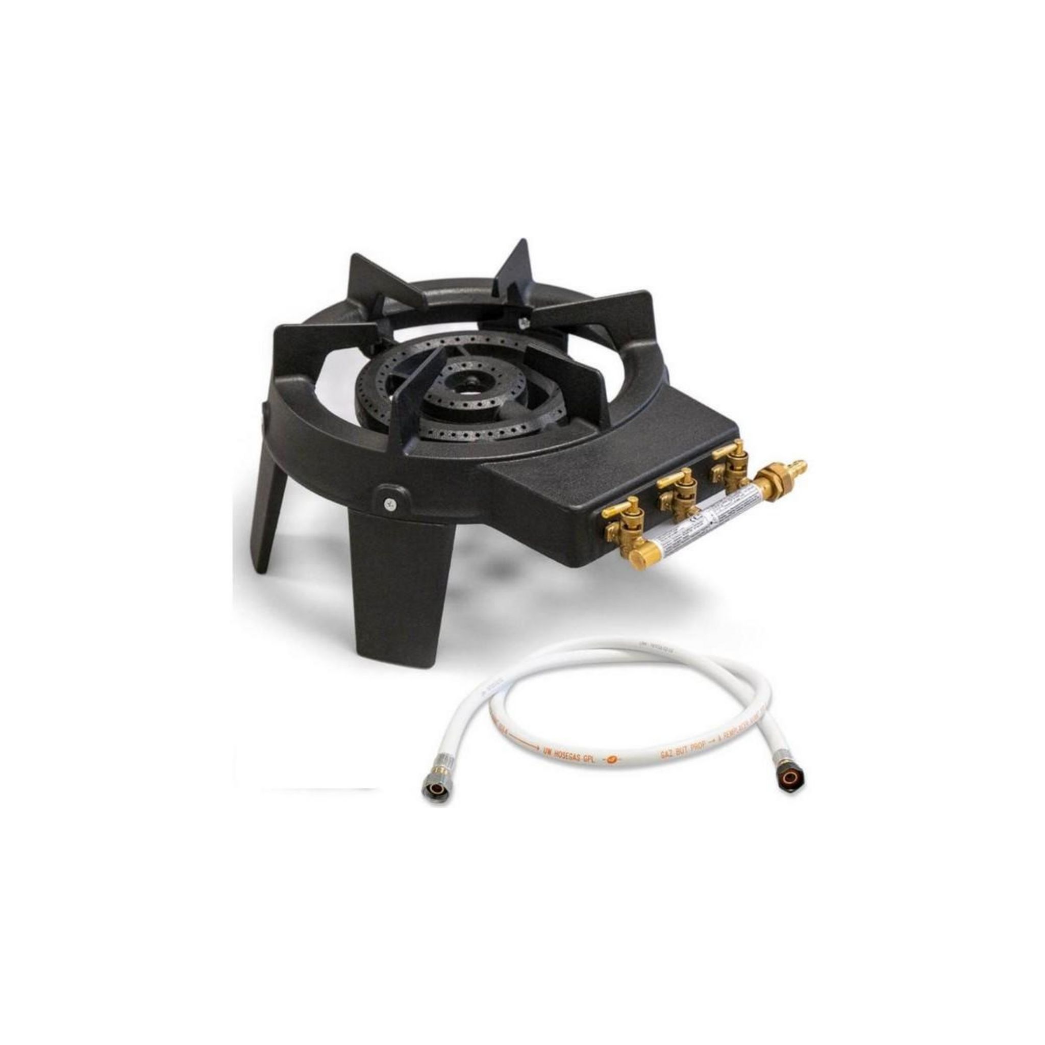 Rechaud à gaz 9,8 KW Fonte véritable 4 pieds 2 bruleurs + Tuyau gaz flexible 1.50m TRIGLAV