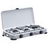 Le réchaud à gaz mobile Multifire GOLD à 3 feux est un équipement performant conçu pour le camping, les réceptions en extérieur ou comme solution de cuisson d'appoint. Avec une puissance de chauffe de 3200W, il est doté de deux brûleurs en fonte amovibles qui assurent une diffusion homogène de la chaleur et qui peuvent se nettoyer facilement. Son couvercle protecteur et sa grille de support robuste garantissent une utilisation sécurisée et stable.