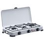 Réchaud gaz 3 feux 4100W - Brûleurs fonte Grille et Couvercle - Plaque de Cuisson Gaz Butane ou Propane