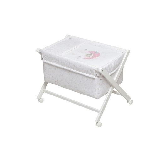 Découvrez le berceau en croix Bear Sleeping de couleur rose, conçu par Interbaby, qui allie sécurité et confort pour votre bébé. Fabriqué en hêtre blanc de haute qualité, ce berceau est accompagné d'une parure douce, d'une nacelle confortable et d'un matelas adapté. Avec des dimensions de 55x90x72 c