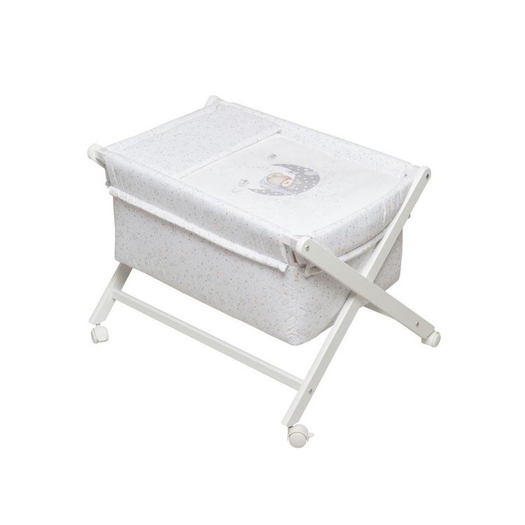 Découvrez le berceau en croix Bear Sleeping en gris, conçu par Interbaby. Fabriqué en hêtre blanc de haute qualité, ce berceau assure à votre bébé un sommeil paisible et sécurisé. Il est livré avec une parure, une nacelle et un matelas, offrant tout le confort nécessaire. Dimensions : 55x90x72 cm. O