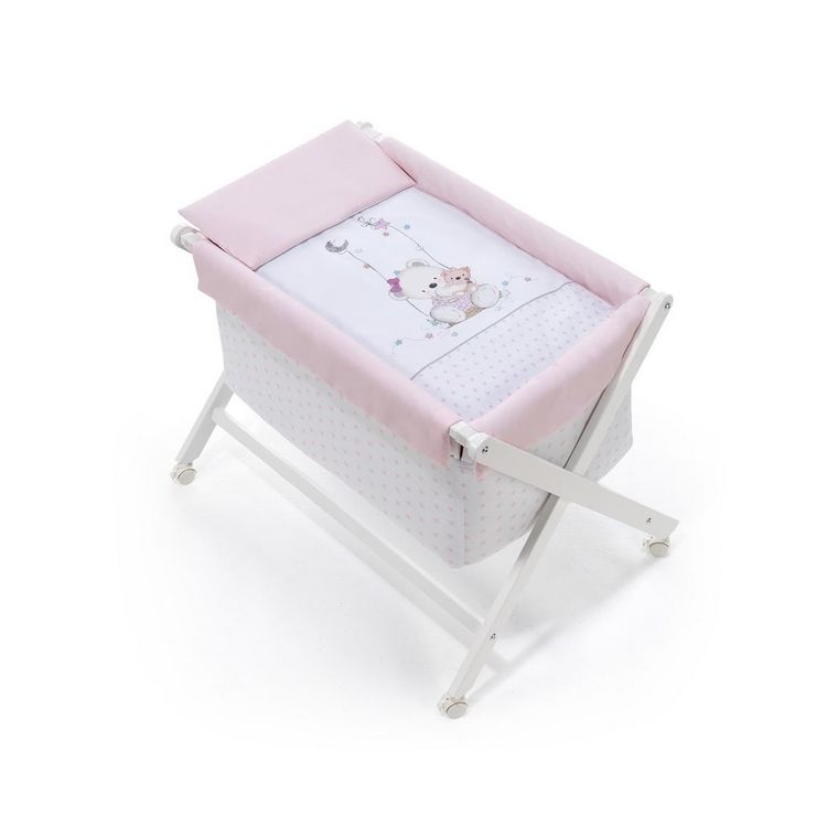 Les produits Interbaby sont conçus avec des matériaux de la plus haute qualité pour assurer la sécurité et le confort des bébés. Berceau En Croix-En Hêtre Blanc + Parure + Nacelle + Matelas-Mod.Oso C.-Rose. Dimensions: 55x90x72 cm